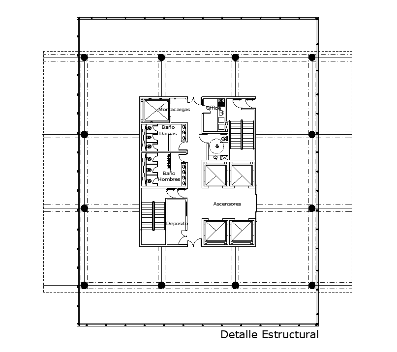 Plan of structural details drawing derived in this AutoCAD drawing file. Download the AutoCAD drawing file.