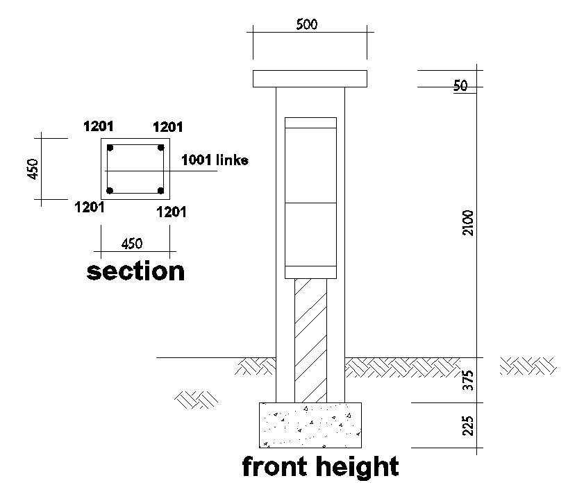 Front height of the boundary wall detail is given in this Autocad drawing model. The total height of the wall is 2.725m. Cross section of column is given. The dimension of column is 450x450mm. For more details download the Autocad drawing file. Thank you for downloading the Autocad file and other CAD program files from our website.