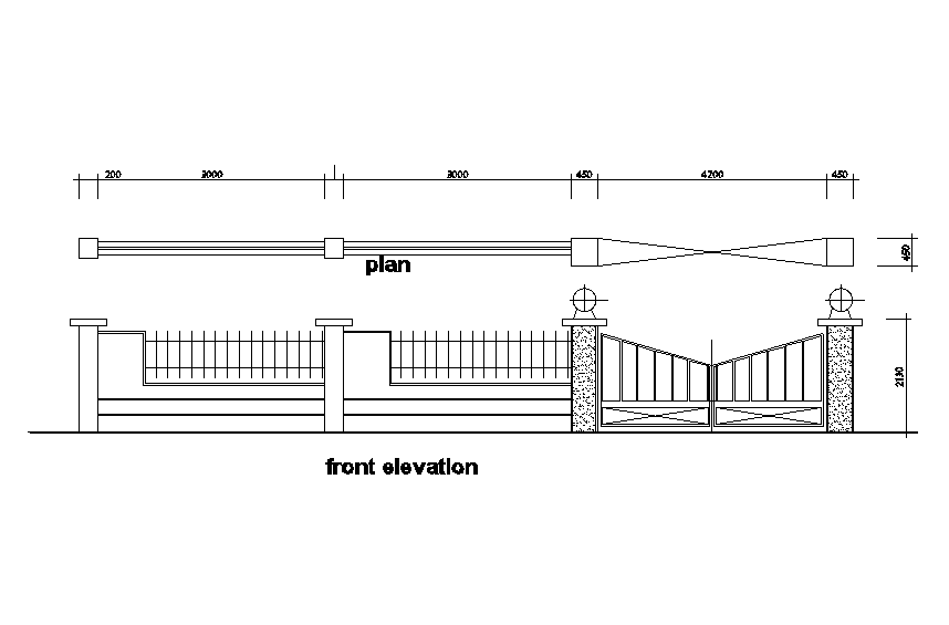 Front elevation of the boundary wall detail is given in this Autocad drawing model. Download now.