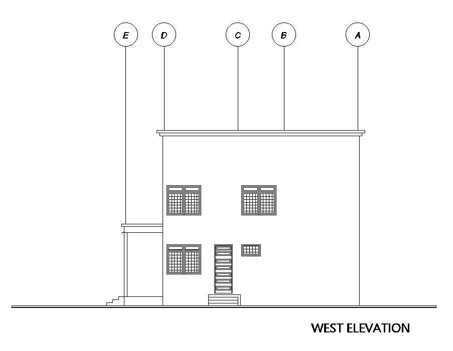 West side elevation of 26x12m office plan is given in this Autocad drawing file. Download the Autocad file.