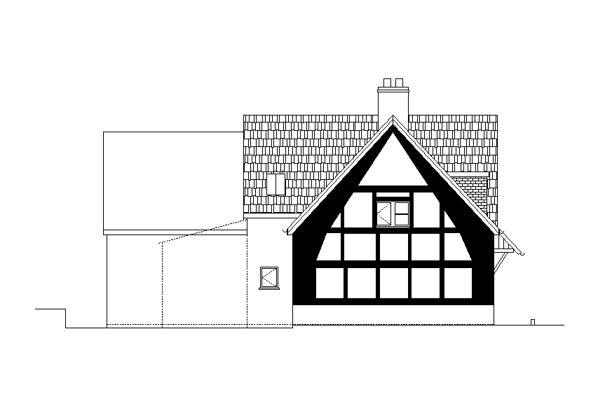 Bungalow right elevation detail drawing presented in this cad drawing file. Download this 2d AutoCAD drawing file.