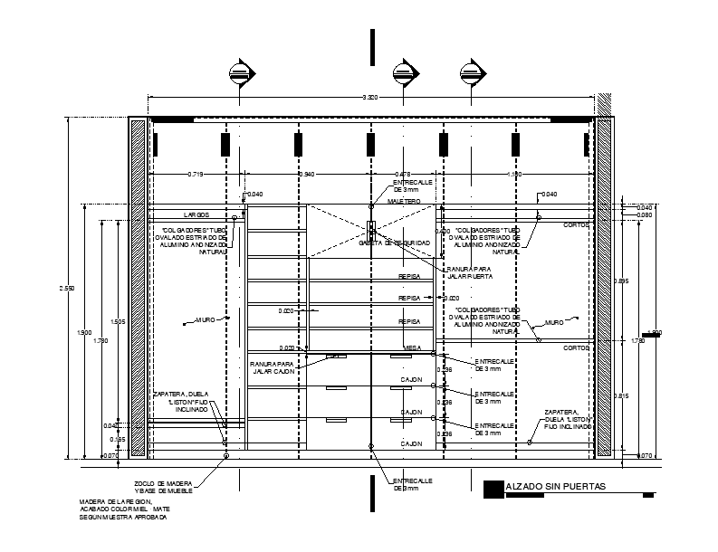 Wardrobe sectional elevation stated in this AutoCAD 2D DWG drawing file.  Download this 2d AutoCAD drawing file.