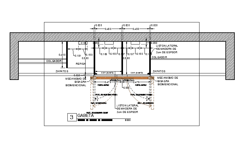 Enlarged detail of Drawer top plan drawing specified in this cad drawing file. the front slider detail gave of the door with specifications. shutter detail and drawer detail is given dimensions and naming detail is also given in this cad drawing file. this can be used by architects and engineers. Download this 2d Autocad drawing file.