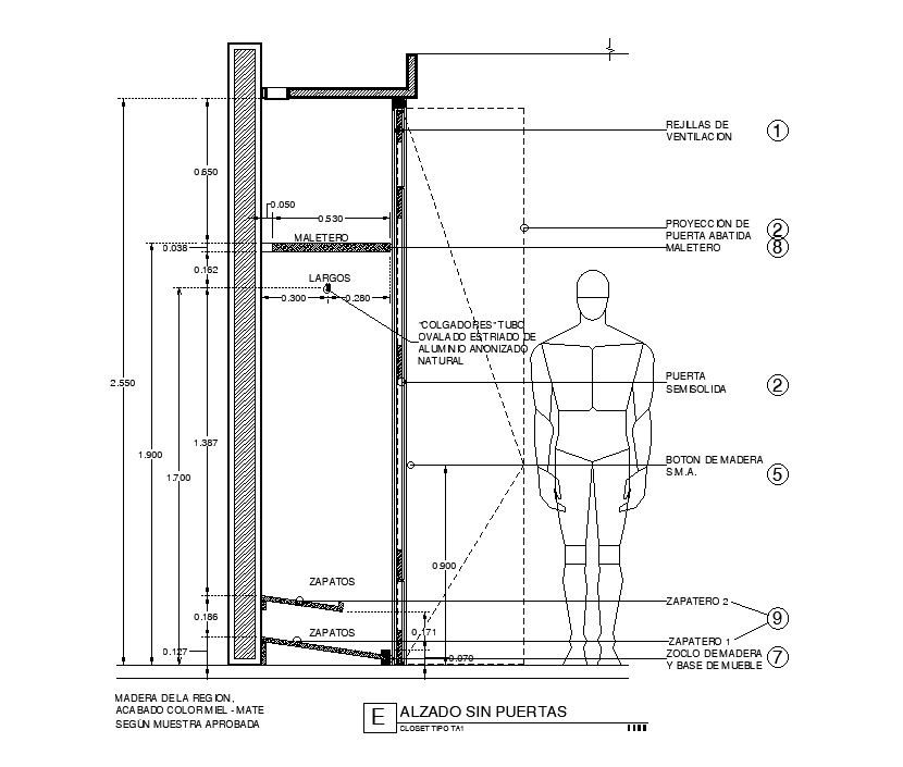 Elevation without doors details separated in this AutoCAD drawing file. this file consists of section detail for wardrobe gave dimensions and specification detail is also given in this cad drawing file. this can be used by architects and engineers. Download this 2d AutoCAD drawing file.