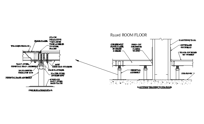 Raised room floor detail drawing specified in this AutoCAD file. Download this 2d AutoCAD drawing file.