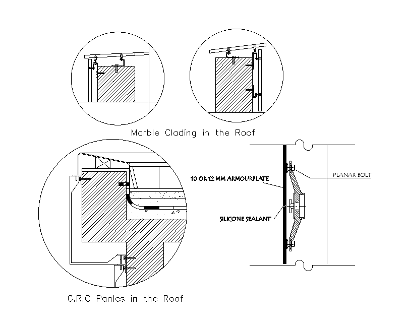This drawing derived the roof section detail drawing. This drawing presented a working detail drawing of marble cladding in the roof and g.r.c panels in the roof with sectional detail drawing are given in this file. Download the Auto-CAD Drawing file. this can be used by architects and engineers. Download this 2d AutoCAD drawing file.
