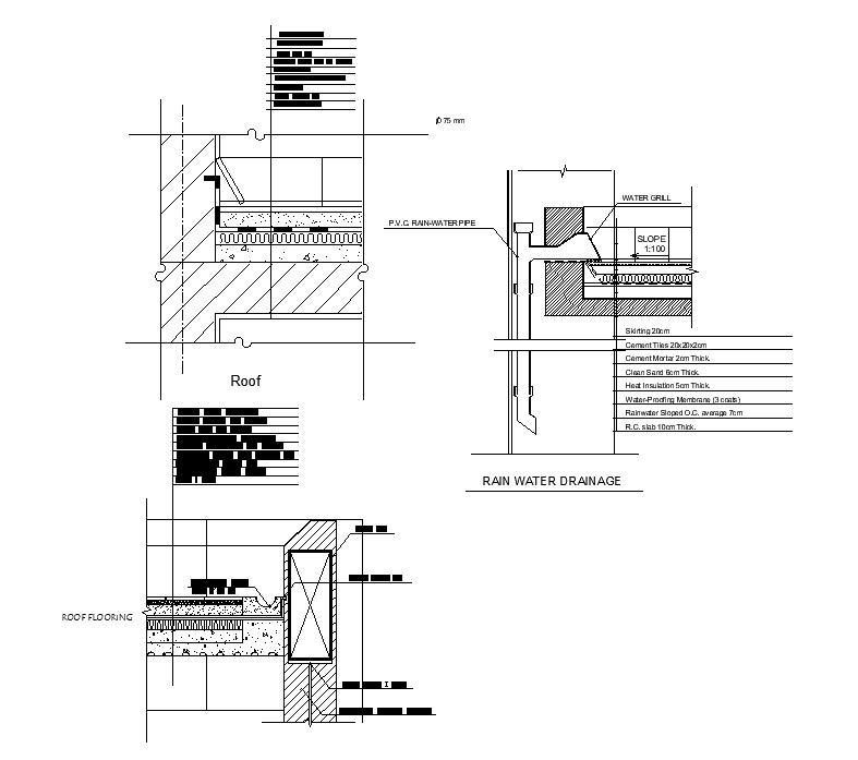 Rainwater drainage line detail separated in this AutoCAD drawing file. Download this 2d AutoCAD drawing file.