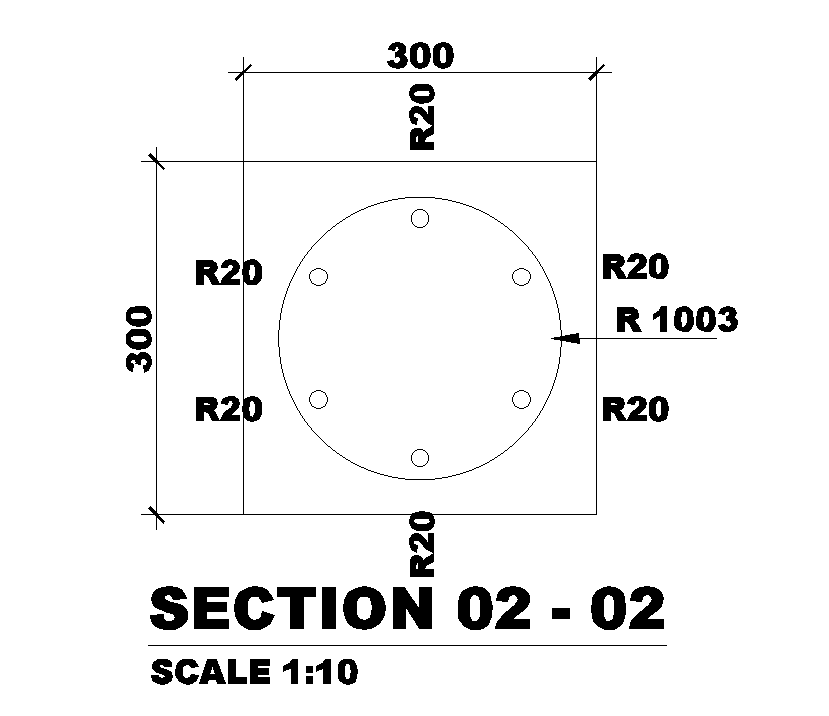 200mm circular column section detail is given in this Autocad drawing model. This column is given for 18x15m house plan of residential building. For more details download the Autocad drawing file. Thank you for downloading the Autocad file and other CAD program files from our website.