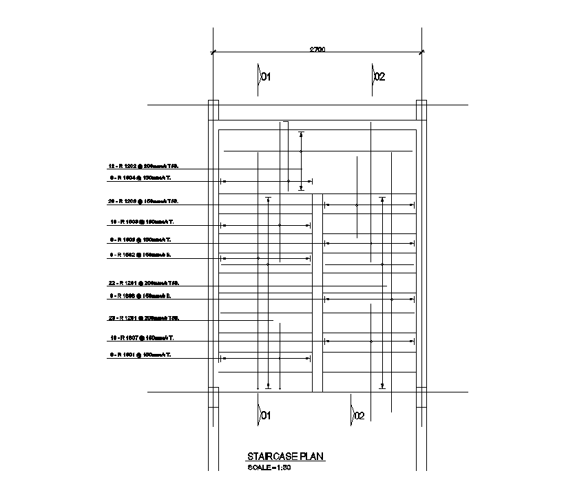 Staircase plan of 18x15m house plan is given in this Autocad drawing file. The length of the staircase is 2.7m. This is given with 1:3 scales with specification. For more details download the Autocad drawing file. Thank you for downloading the Autocad file and other CAD program files from our website.