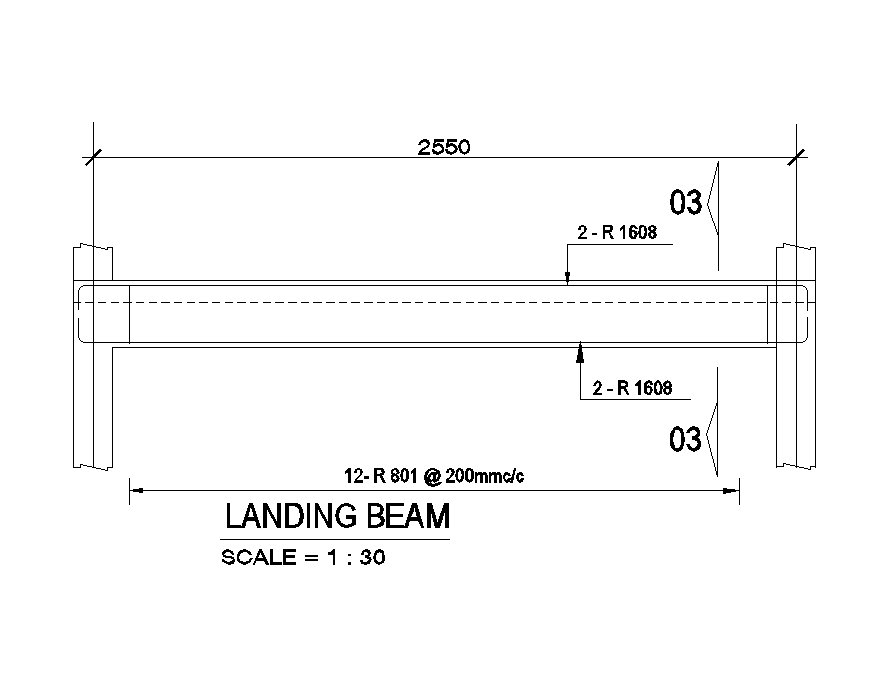 Landing beam of 18x15m house plan of residential building is given in this Autocad drawing model. The length of the beam is 2.55m. This is given with 1:3 scales with specification. For more details download the Autocad drawing file. Thank you for downloading the Autocad file and other CAD program files from our website.