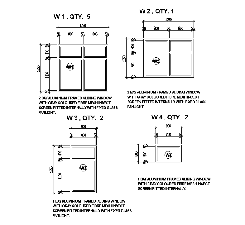 Windows of 9x10m house plan is given in this Autocad drawing file. This is single story house plan. In this drawing 4 windows are given. The dimension of W1, W2, W3 & W4 is 1750x1650mm with 5 piecee, 1750x1350mm with 1 piece, 900x1650mm, and 00x600mm respectively. The dimension of W1, W2, & W3 are 1700x1650mm with 17 pieces, 3600x1650m with 2 pieces, 600x600mm with 12 pieces respectively. For more details download the autocad drawing file. Thank you for downloading the Autocad file and other CAD program files from our website.