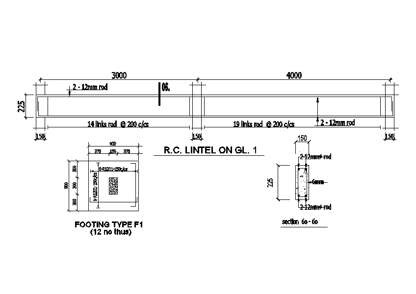 Footing type of 9x10m house plan is given in this Autocad drawing file. This is single story house plan. In this RC lintel on ground level is given. The dimension of footing is 900x900m. The dimension of column is 150x225mm. The dimension of lintel beam is 7m. For more details download the autocad drawing file. Thank you for downloading the Autocad file and other CAD program files from our website.