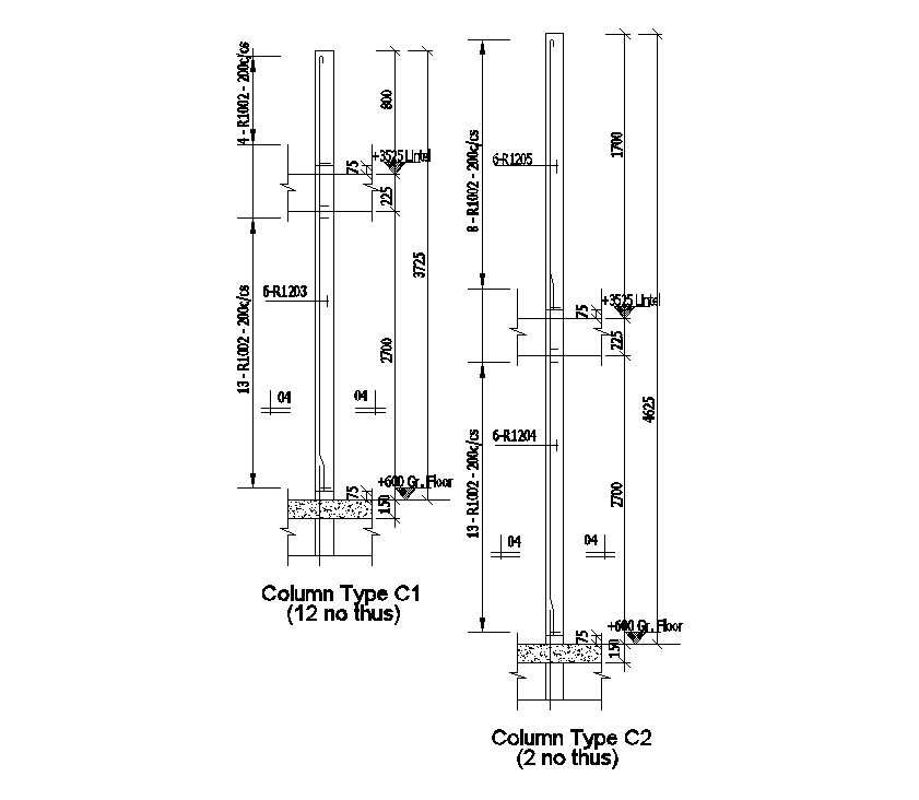 A C1 & C2 column detail is given for 9x10m house plan in this Autocad drawing file. In this drawing there are two sections given. For more details download the autocad drawing file. Thank you for downloading the Autocad file and other CAD program files from our website.