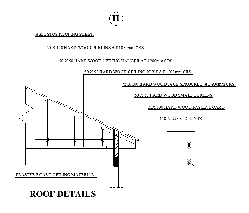 A roof detail of 19x10m house plan is given in this Autocad drawing file. Download now.