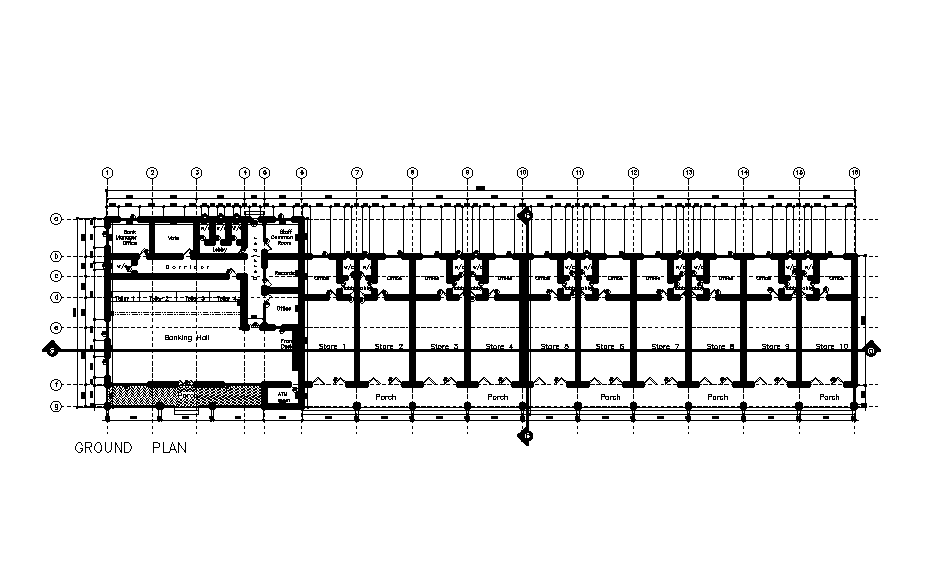 63x16m bank office cum commercial shop is given in this Autocad drawing file. In this stores are given. This plan consists of porches, stores, banking hall, corridor, bank manager office, vote, lobby, staff common room, records room, office rooms, lobby, water closets, and ATM rooms are available. For more details download the autocad drawing file. Thank you for downloading the Autocad file and other CAD program files from our website.