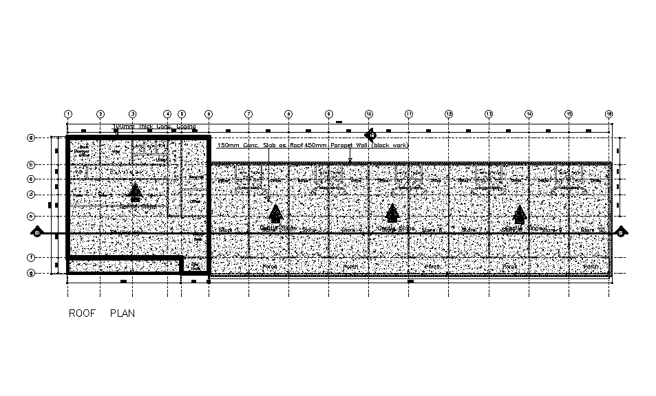 Roof plan of 63x16m bank office cum commercial shop is given in this Autocad drawing file. Download now.