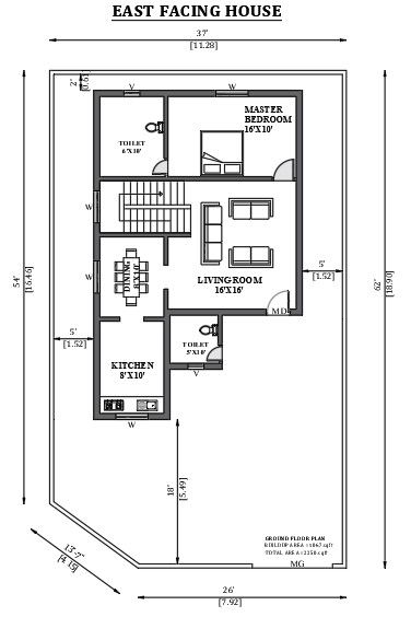 37'x62' East facing house plan is given in this FREE 2D Auto cad drawing file. Download now.
