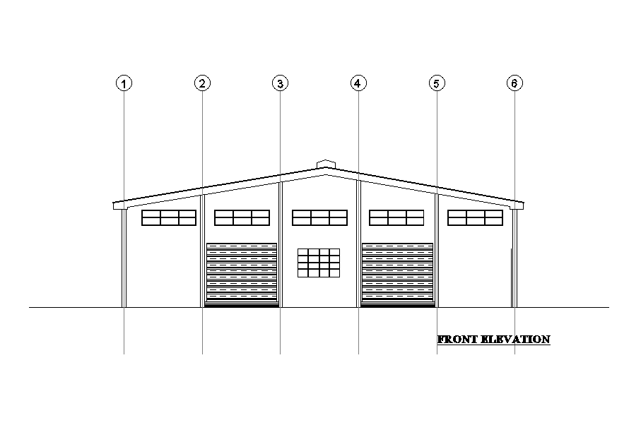 Front elevation of 80x50m compositing and recycle plant is given in this Autocad drawing file.Download now.