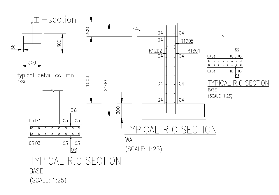 Typical RC column section of 80x50m compositing and recycle plant is given in this Autocad drawing file. I section column dimension is 300x300mm. Height of the column is 2.1m. For more details download the Autocad drawing file. Thank you for downloading the Autocad file and other CAD program files from our website.
