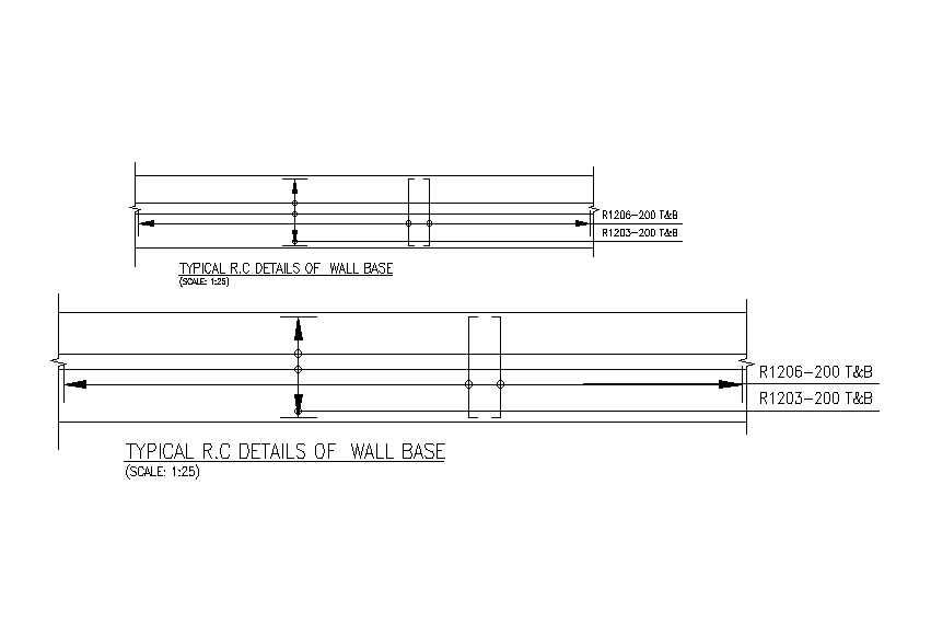 Typical RC detail of wall base of 80x50m compositing and recycle plant is given in this Autocad drawing file. The length of wall is 6m. There are two wall types given. For more details download the Autocad drawing file. Thank you for downloading the Autocad file and other CAD program files from our website.