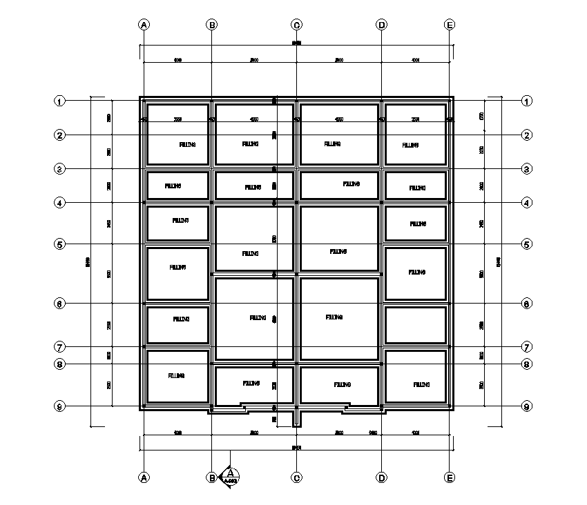 Beam & column layout of 18x18m residential building plan is given in this Autocad drawing model.
