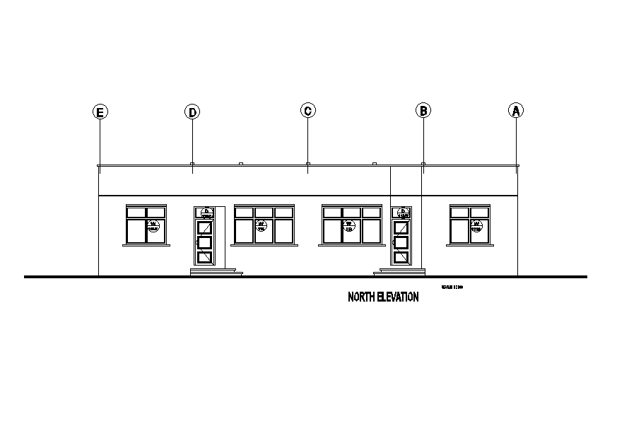 North elevation of 18x18m residential building plan is given in this Autocad drawing model. Download now.