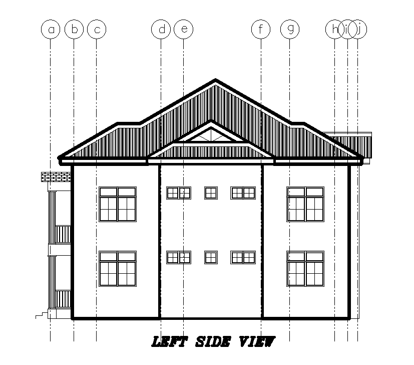 Left side view of 25x15m ground floor plan of residential building is given in this Autocad drawing model.Download now.