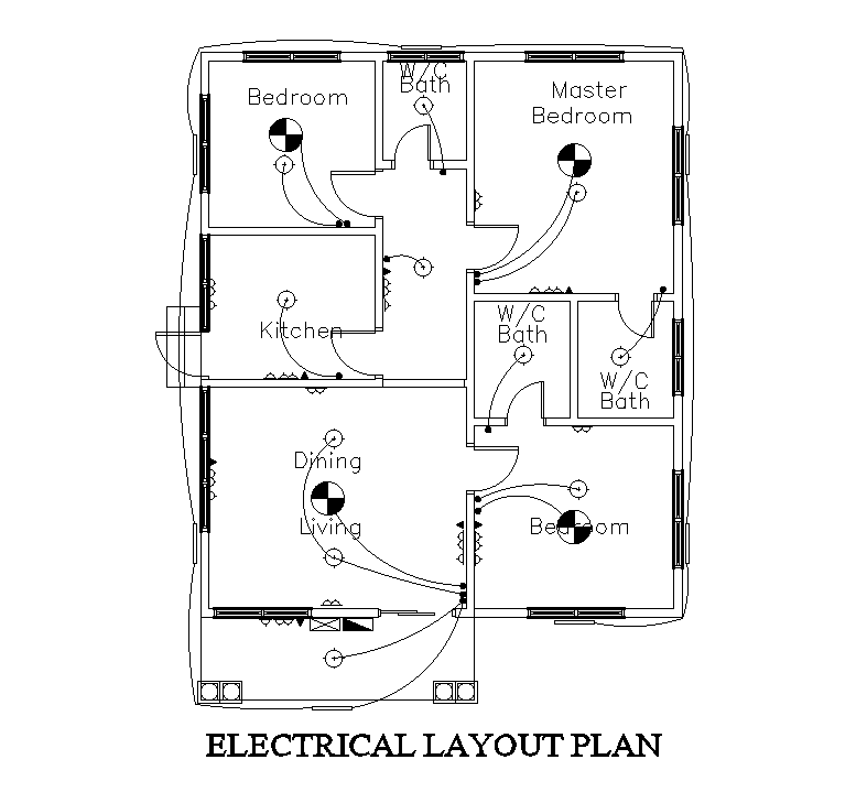 Electrical layout of 8x12m residential house plan is given in this Autocad drawing file. This is single story building. In this house, kitchen, dining area, opened porch, living area, master bedroom with water closet & bathroom, guest room with attached bathroom, and kid’s room with attached bathroom & water closet is available. For more details download the autocad drawing file. Thank you for downloading the Autocad file and other CAD program files from our website.