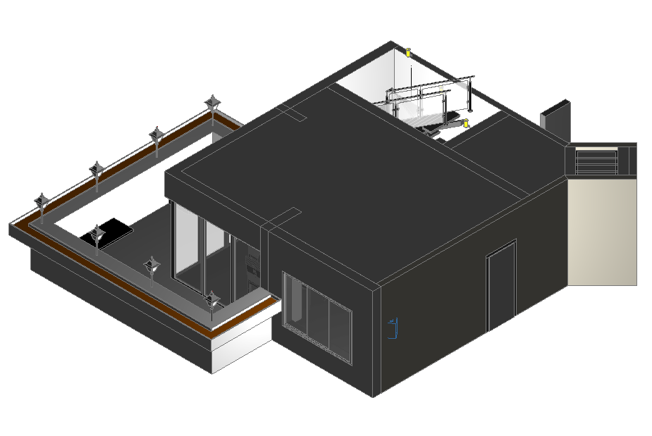 Simple 3D House Design in DWG file Detail. Front side view in show.