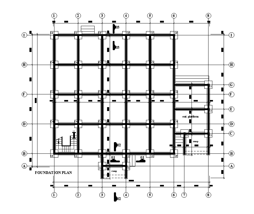 Foundation layout of 14x19m work shop plan is given in this Autocad drawing file. Download now.