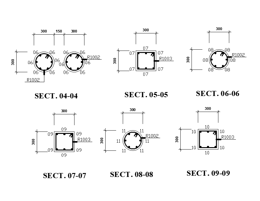 A section view of column is available for the 21x15m show room building in this Autocad drawing file. In this drawing 3 square column and 3 circular columns are given. Number of bars and hooks are mentioned in this drawing model. For more details download the Autocad drawing file. Thank you for downloading the Autocad file and other CAD program files from our website.