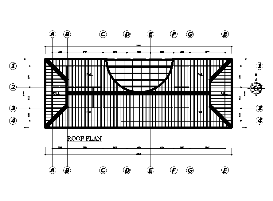 Roof plan of 25x39m shopping complex plan is given in this Autocad drawing file. Download now.