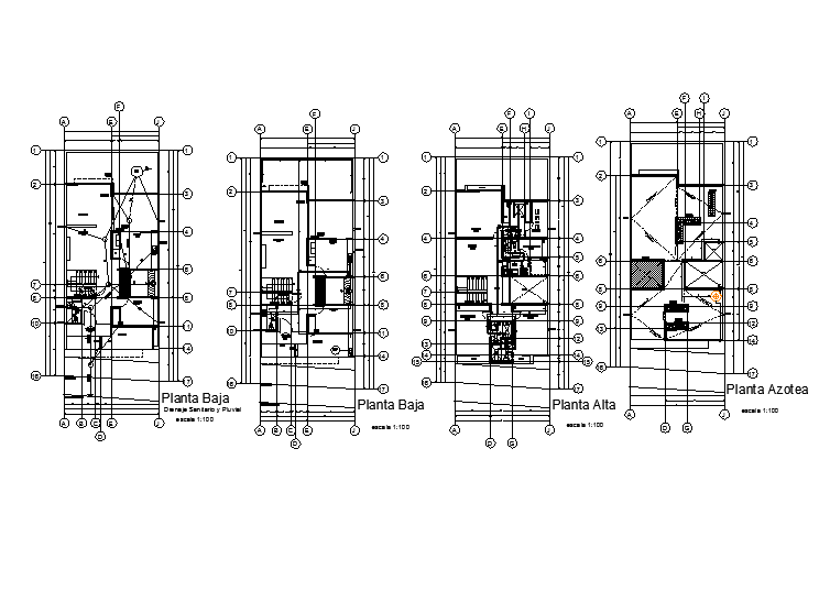 All Floor Detail, Ground floor , First Floor, Second floor & Terrace lay-out detail. with all detail include like furniture , ceiling, electric detail.