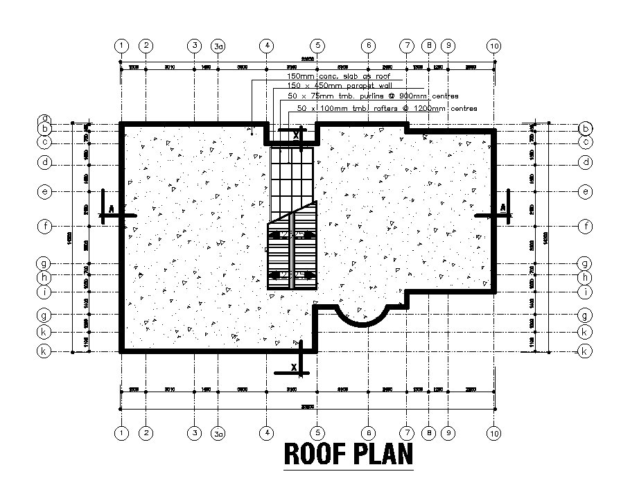 Roof plan of 23x14m apartment plan is given in this Autocad drawing file. Download now.
