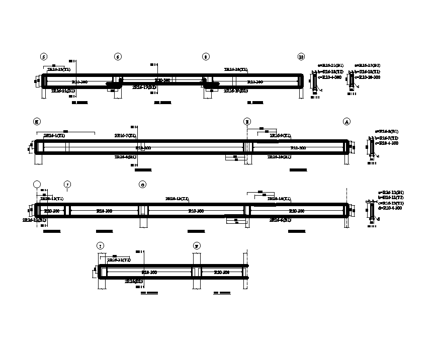 Autocad 2D file has the details of beams on grid line in this Autocad drawing file. There are four beams details given. This is G+2 apartment building. The length, breadth, section dimension, and reinforcement detail of footing are mentioned in this drawing model. For more details download the Autocad drawing file. Thank you for downloading the Autocad file and other CAD program files from our website.