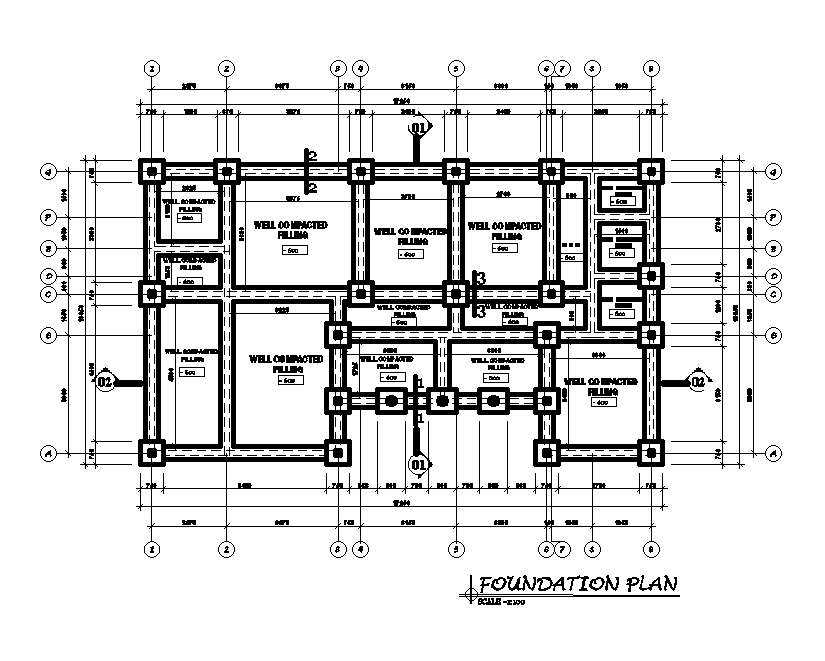 Foundation layout of 17x10m house plan is given in this Autocad drawing file. Download now.