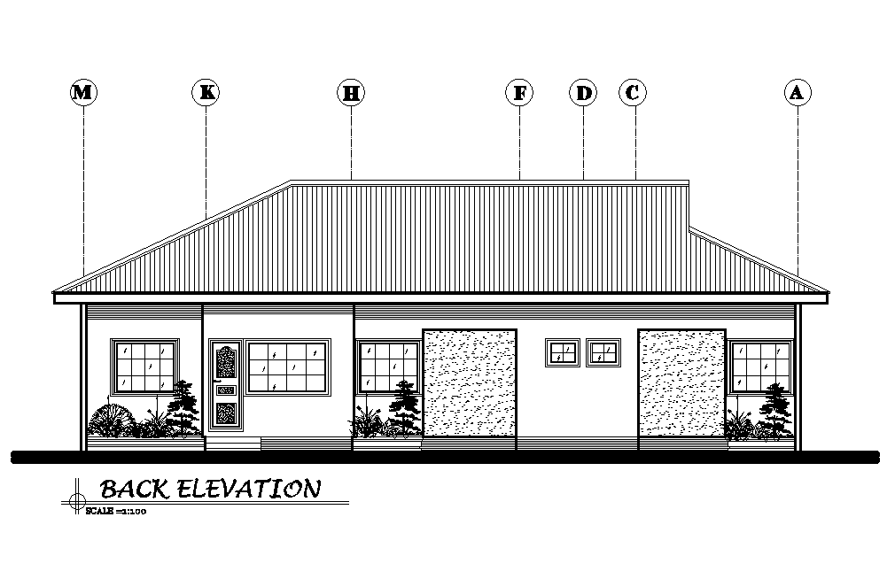 Back elevation of 17x14m ground floor house plan is given in this Autocad drawing file.Download now.