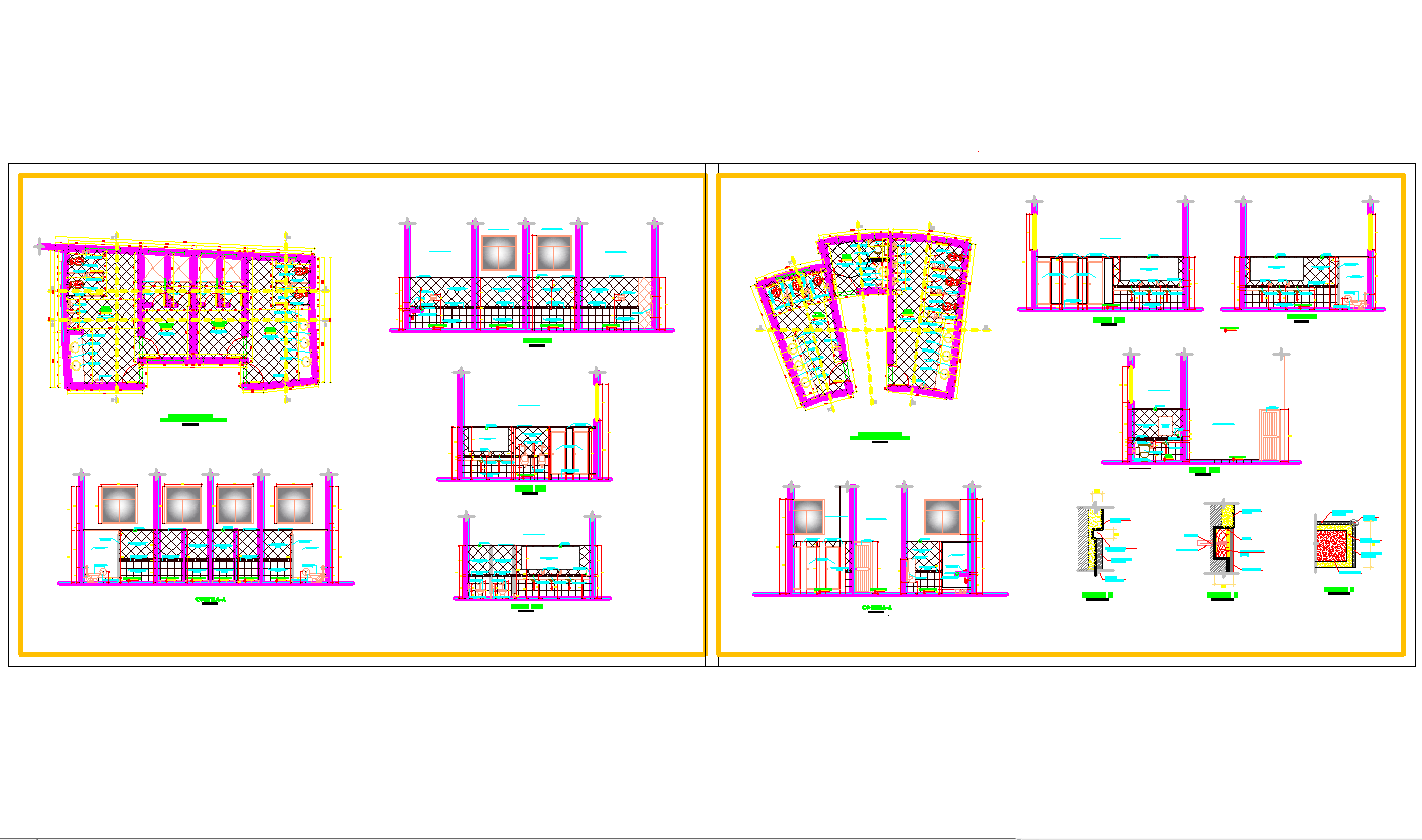 Bathroom elevations plan and detail cad drawing