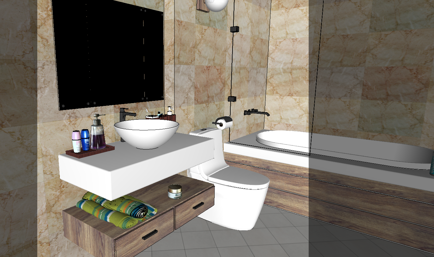 3d Vanity design sketchup file. Include all bathroom fittings design and detail.