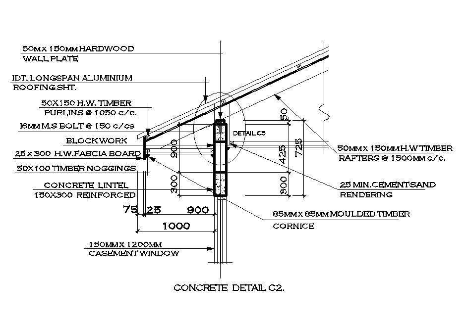 150x1200mm cement window, 20x150mm hardwood wall plate, and other details are given in this drawing. For more details download the Autocad drawing file. Thank you for downloading the Autocad drawing file and other CAD program files from our website.