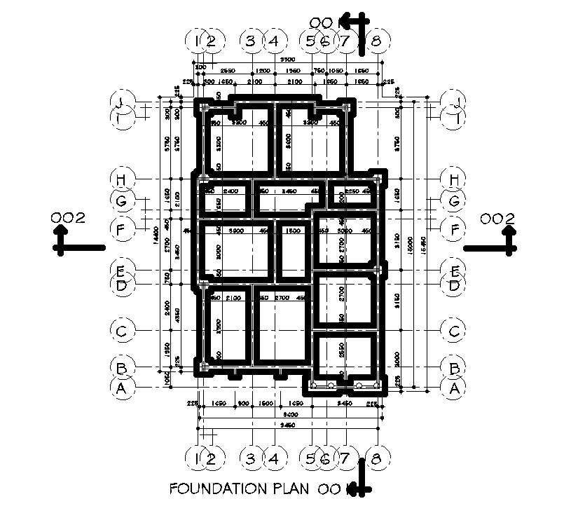 Foundation plan of 10x15m house plan is given in this Autocad drawing file. Download now.