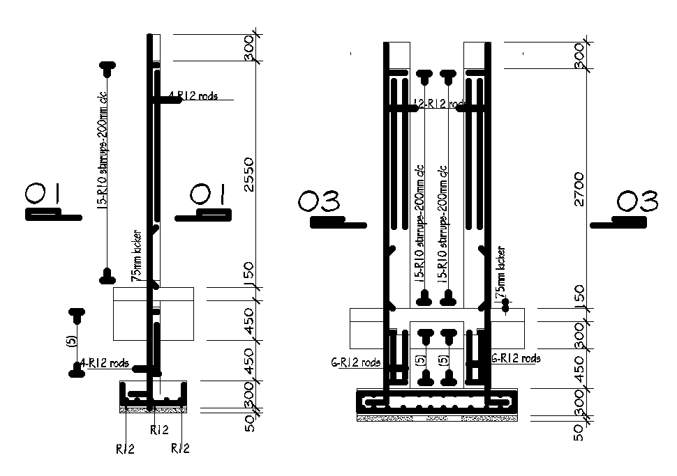 Typical column cum footing of 10x15m house plan is given in this Autocad drawing file. Stirrups details are given in this drawing. Reinforcement details are given. For more details download the Autocad drawing file. Thank you for downloading the Autocad drawing file and other CAD program files from our website.