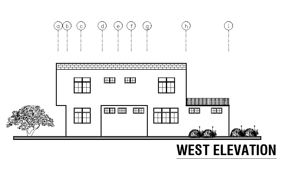 West side elevation of 12x18m house plan is given in this Autocad drawing file. Download now.