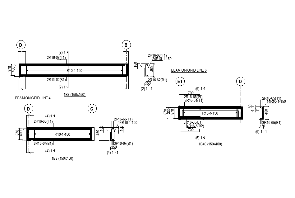 Three beam grid lines of 12X18m are given in this Autocad drawing file. Reinforcement detail is given in this drawing model. The dimension of cross section is 150x450mm. For more details download the Autocad drawing file. Thank you for downloading the Autocad drawing file and other CAD program files from our website.