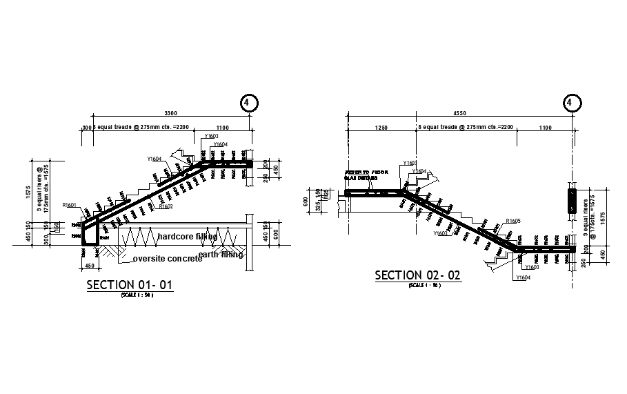 A section view of staircase is given for 12x18m house plan is given in this Autocad drawing file. There are two staircase section views are given. The length of staircase 1 & staircase 2 are 3.3m and 4.55m respectively. For more details download the Autocad drawing file. Thank you for downloading the Autocad drawing file and other CAD program files from our website.