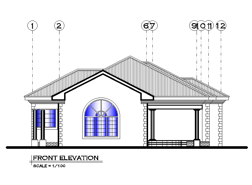 Front elevation of 15x17m house plan is given in this Autocad drawing file.Download now.