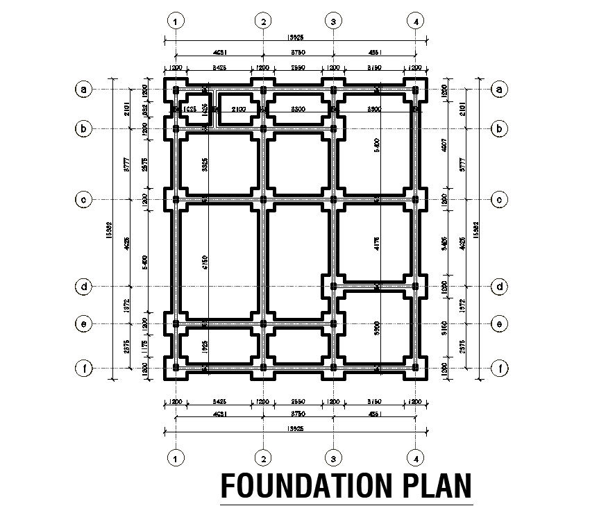 Foundation layout of 15x17m house plan is given in this Autocad drawing file. Download now.