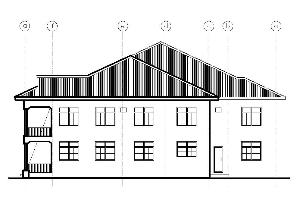 Right side elevation of 22x22m house plan is given in this Autocad drawing file. Download now.