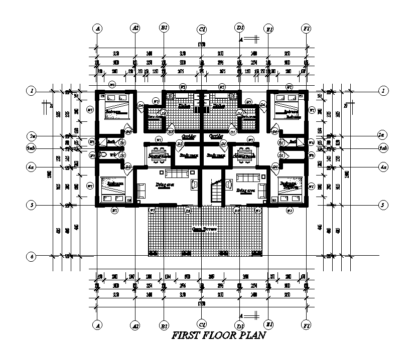 18x14m first floor house plan is given in this Autocad drawing file. This is G+1 house plan. In this first floor two houses are available. Living area, , study room, kitchen, corridor, store room, dining hall, master bedroom with wash area, kid’s room and open terrace is available in the first floor. For more details download the Autocad drawing file. Thank you for downloading the Autocad drawing file and other CAD program files from our website.