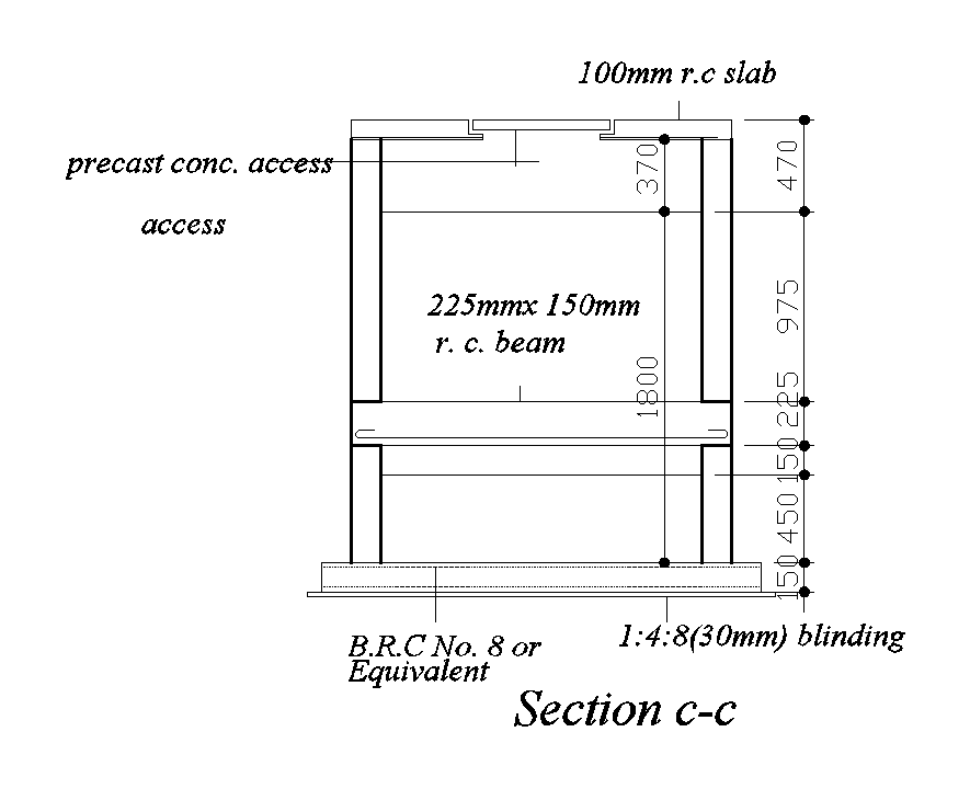A section of the chamber is given in this Autocad drawing file. This section is given for the 18x14m house plan. 1:3 cement mortar with 12mm thickness, 50mm precast cover, grease seal, bitumen seal, and other details are given in this drawing model. For more details download the Autocad drawing file. Thank you for downloading the Autocad drawing file and other CAD program files from our website.